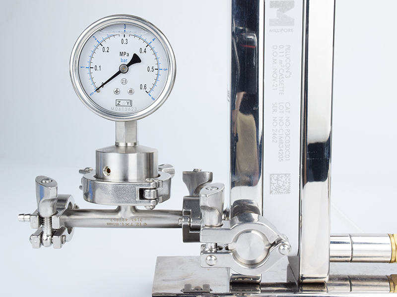 PESU不锈钢切向流系统:配置简易,占用空间小;卫生级设计,可完全线性放大;可用于小试,中式,小规模生产。大流量蠕动泵缩短实验时间;膜包可提供S:0.11㎡/L:0.5㎡和1.3㎡;改性亲水聚醚砜(PESU)/再生纤维素(RC);非特异性蛋白吸附低,产品回收率高,通量高,化学兼容性好。